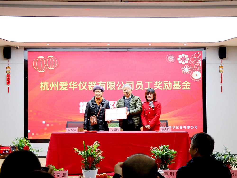 会议上公司创始人张绍栋、苏宽慧夫妇捐资1000万设立“杭州快盈仪器有限公司员工奖励基金”,该笔基金交由公司工会运作和管理,基金收益用于奖励快盈仪器及控股子公司的杰出员工。